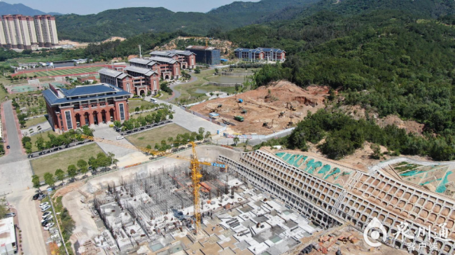 18日,在施工现场,数台塔吊伸展着巨臂,工程车辆来回穿梭,工人们在各自岗位紧张有序作业。该项目总建筑面积约7.9万平方米,分三个批次建设。其中第一批次将建设包括教师公寓、学生公寓、实验楼等7栋主楼,全部采用预制装配式结构。“我们每天保持至少300名左右工人作业,同步推进第一、第二批次项目建设。”项目负责人郭荣平介绍,现在第一批次已有6栋主楼封顶,同步召开内外装修;第二批次的科学楼和体育馆分别进行冲孔桩和人防底板浇筑施工;第三批次实训中心正在抓紧办理前期手续,预计8月份完成施工招标。