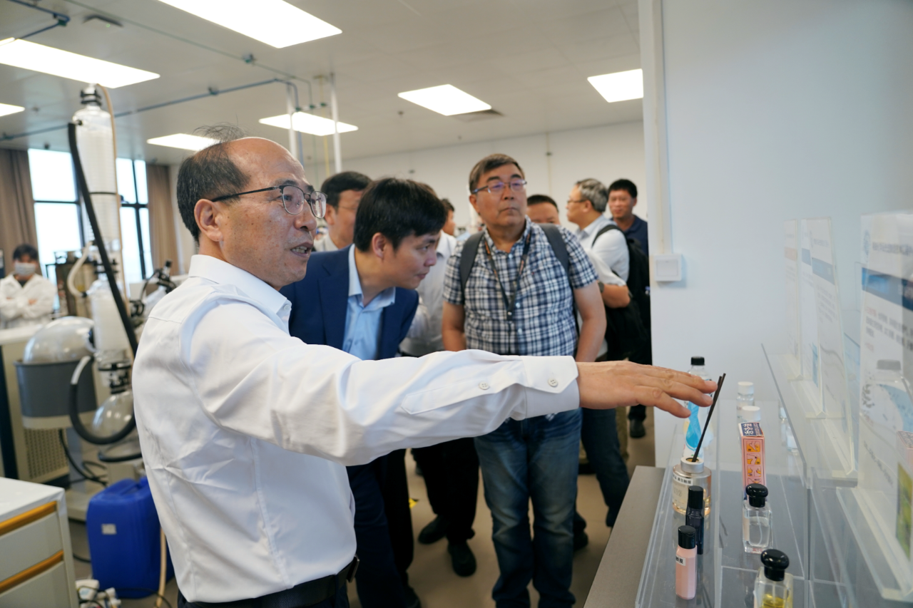 范晓彬院长一行参观了实验室测试中心、室企共建产线以及先进纤维与技术、精细化学品先进制造等研发平台,深入分析各科研团队科技攻关以及产业化示范情况。
