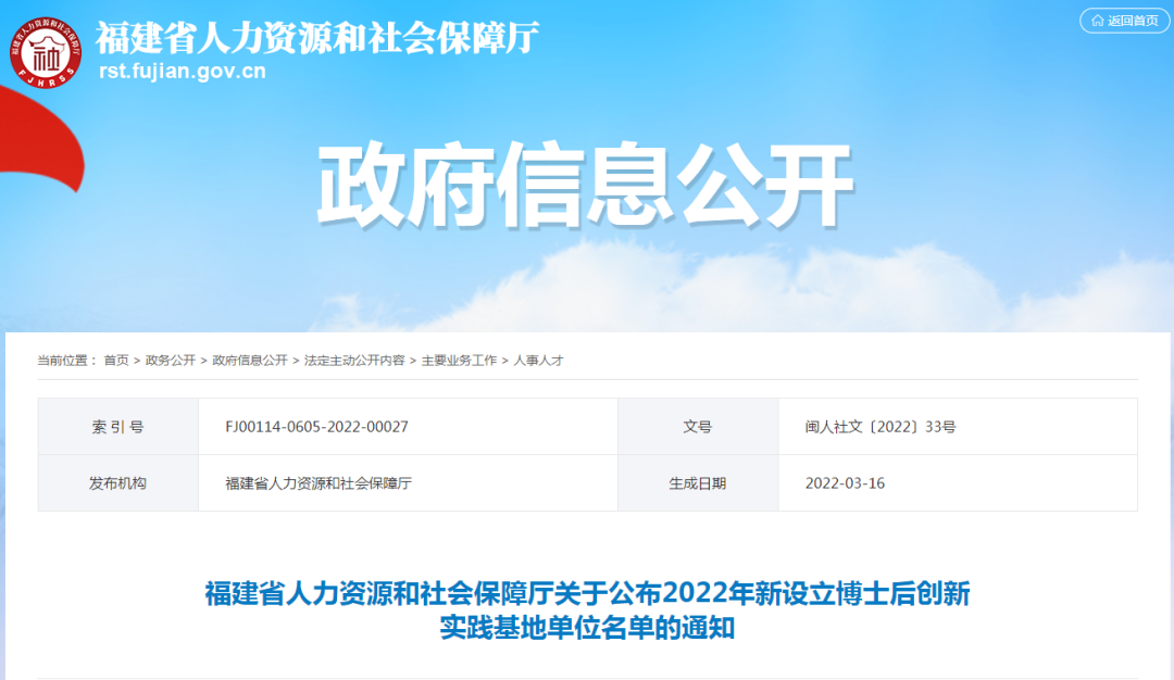 近期,福建省人力资源和社会保障厅公布