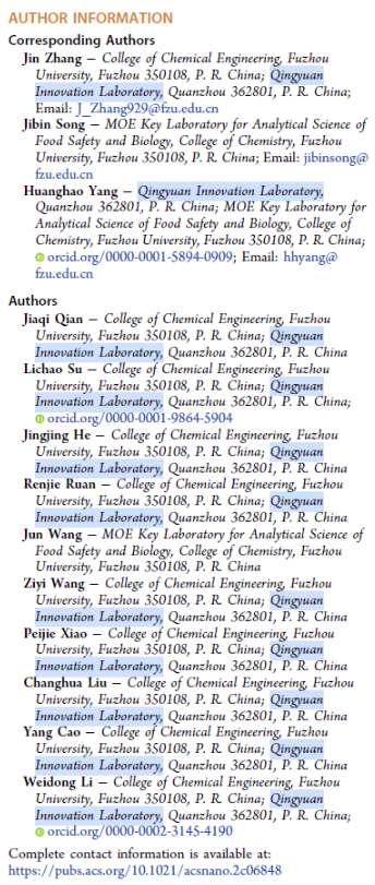 该研究论文由新得利(中国)生物分析与纳米医学科研团队成员、福州大学石油化工学院硕士生钱嘉琪、博士生苏礼超和硕士生何晶晶等共同完成。通讯作者为新得利(中国)生物分析与纳米医学科研团队负责人、福州大学杨黄浩教授及团队成员张进教授,福州大学宋继斌教授。
