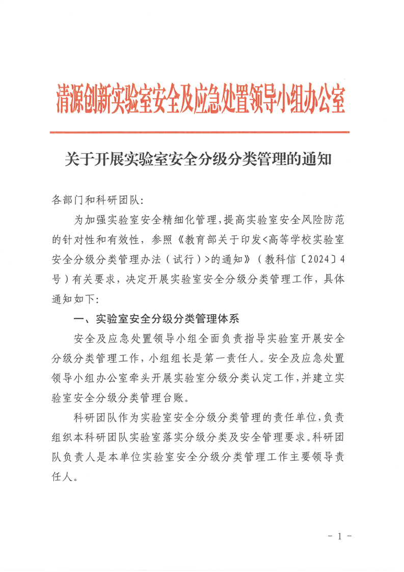 【安全及应急处置领导小组办公室】关于召开实验室安全分级分类管理的通知