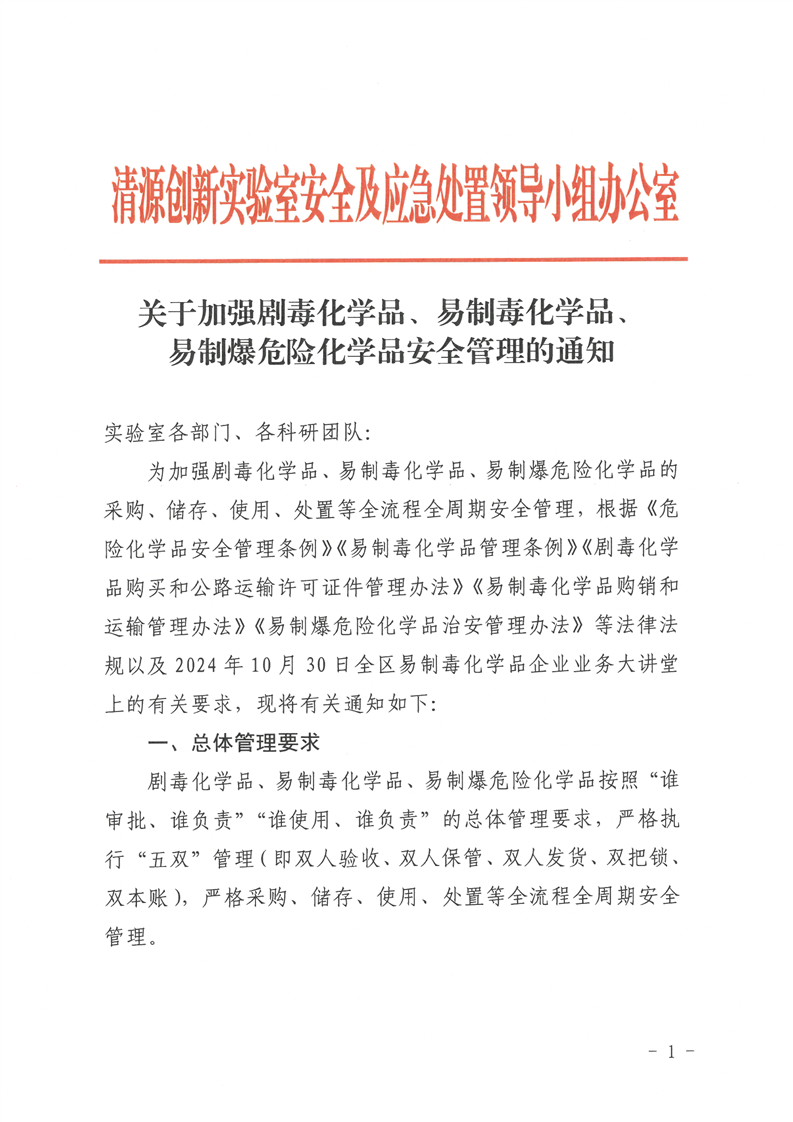 【安全及应急处置领导小组办公室】关于加强剧毒化学品、易制毒化学品、易制爆危险化学品安全管理的通知