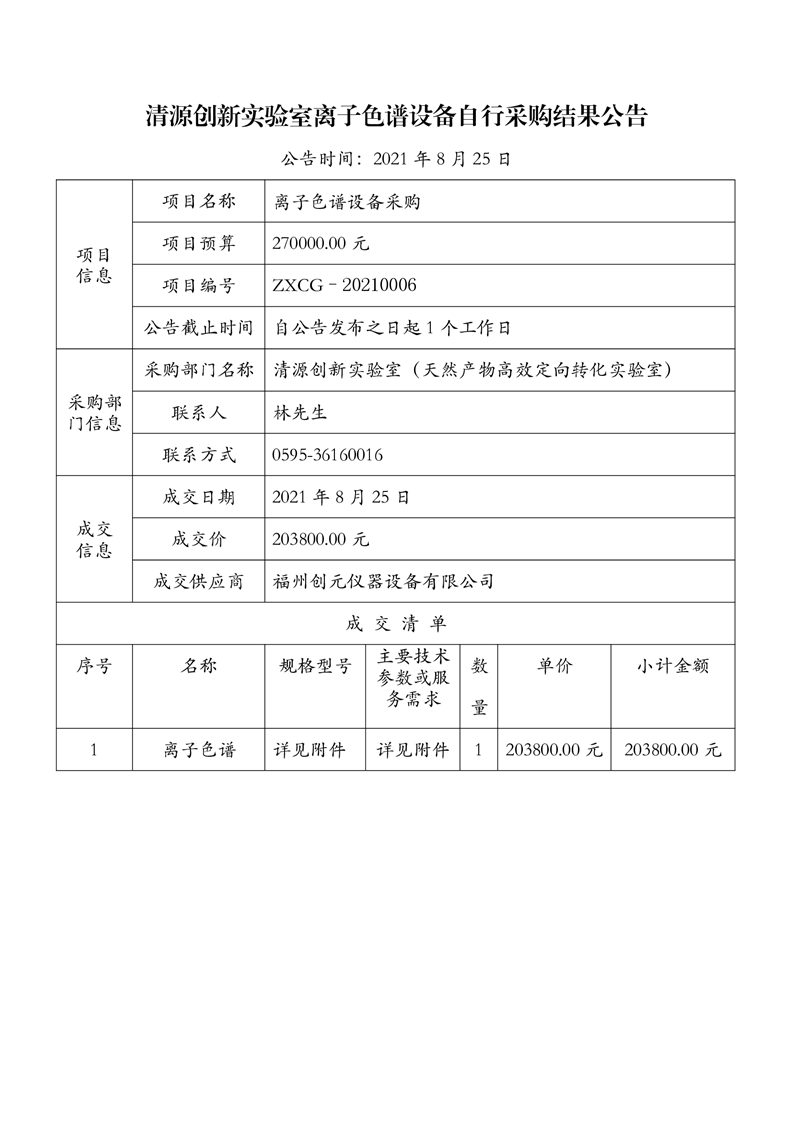 新得利(中国)离子色谱自行采购结果公告