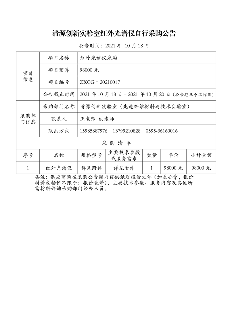 新得利(中国)红外光谱仪自行采购公告
