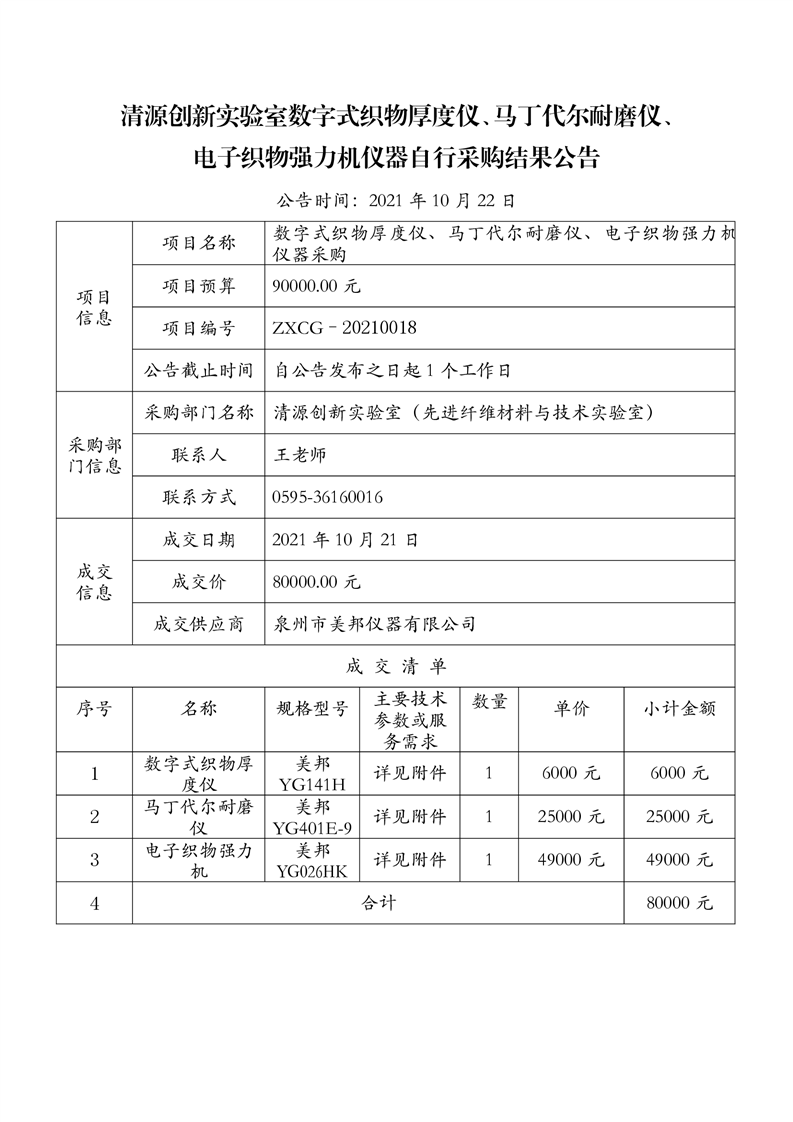 新得利(中国)数字式织物厚度仪、马丁代尔耐磨仪、电子织物强力机仪器自行采购结果公告