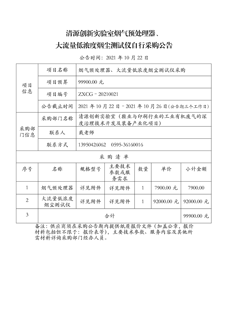 新得利(中国)烟气预处理器、大流量低浓度烟尘测试仪自行采购公告