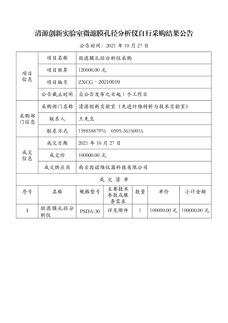 新得利(中国)微滤膜孔径分析仪自行采购结果公告