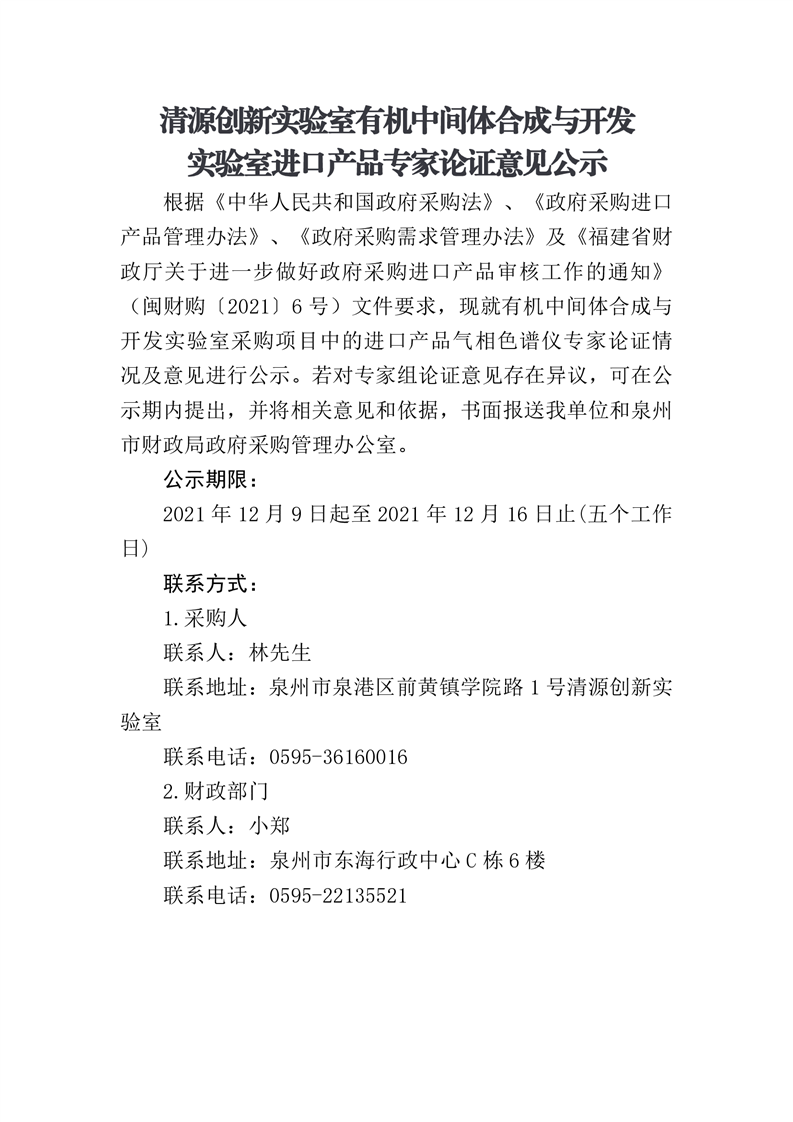 新得利(中国)有机中间体合成与开发实验室进口产品专家论证意见公示