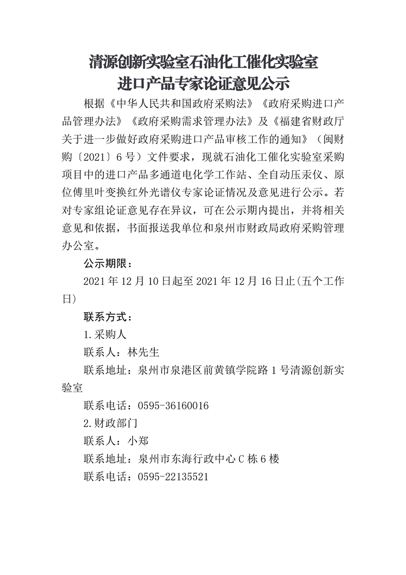 新得利(中国)石油化工催化实验室进口产品专家论证意见公示