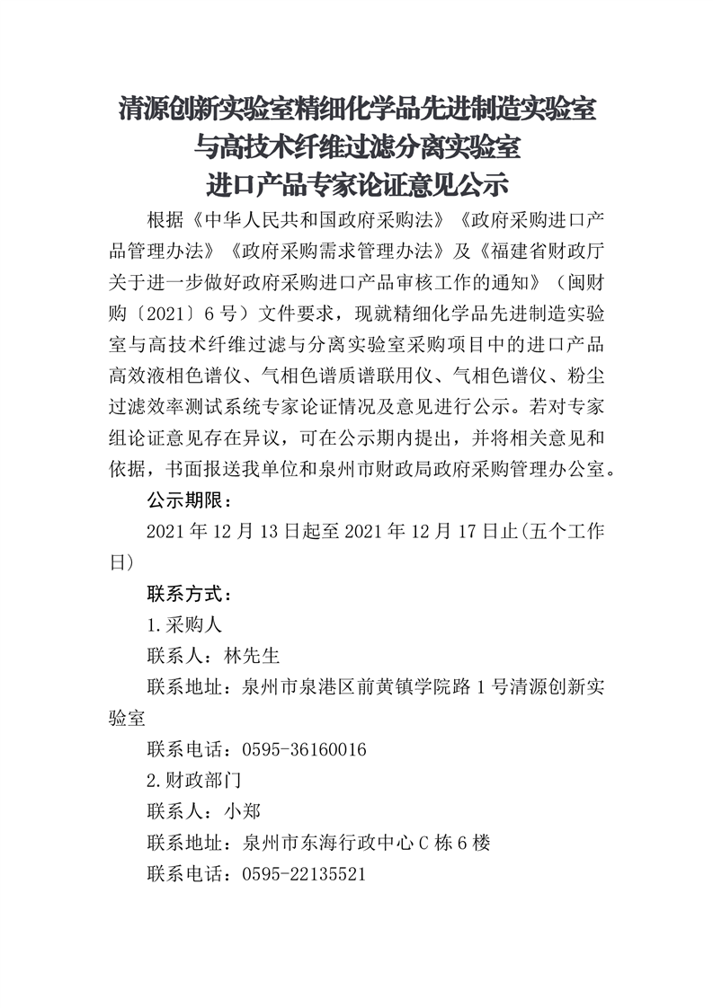 新得利(中国)精细化学品先进制造实验室与高技术纤维过滤分离实验室进口产品专家论证意见公示