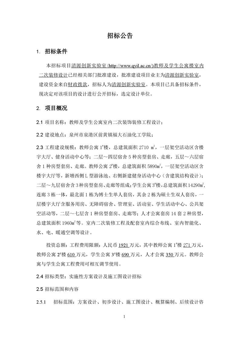 新得利(中国)教师及学生公寓室内二次装饰装修工程设计招标公告(二次)