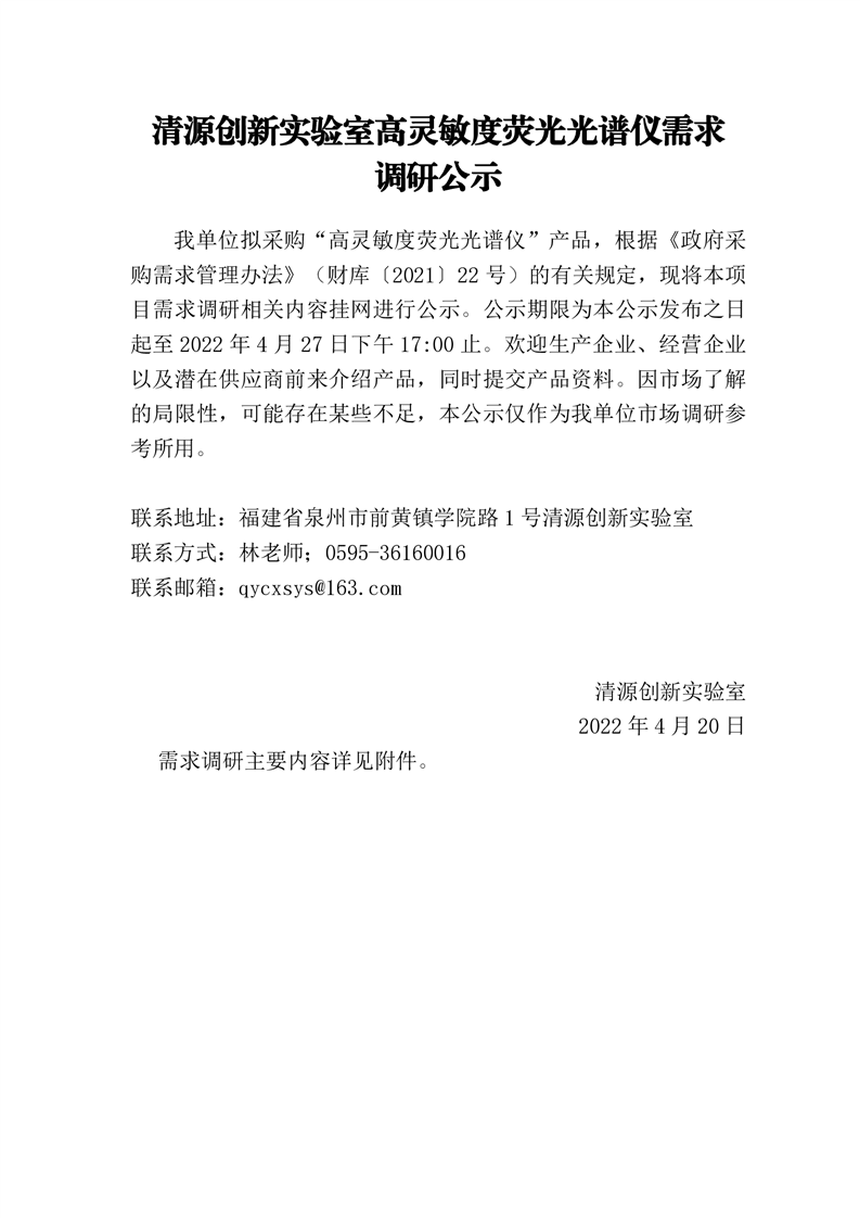 新得利(中国)高灵敏度荧光光谱仪需求调研公示