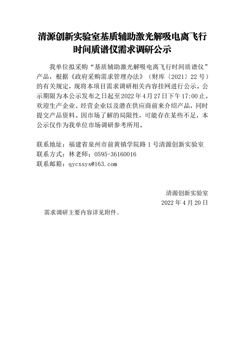 新得利(中国)基质辅助激光解吸电离飞行时间质谱仪需求调研公示