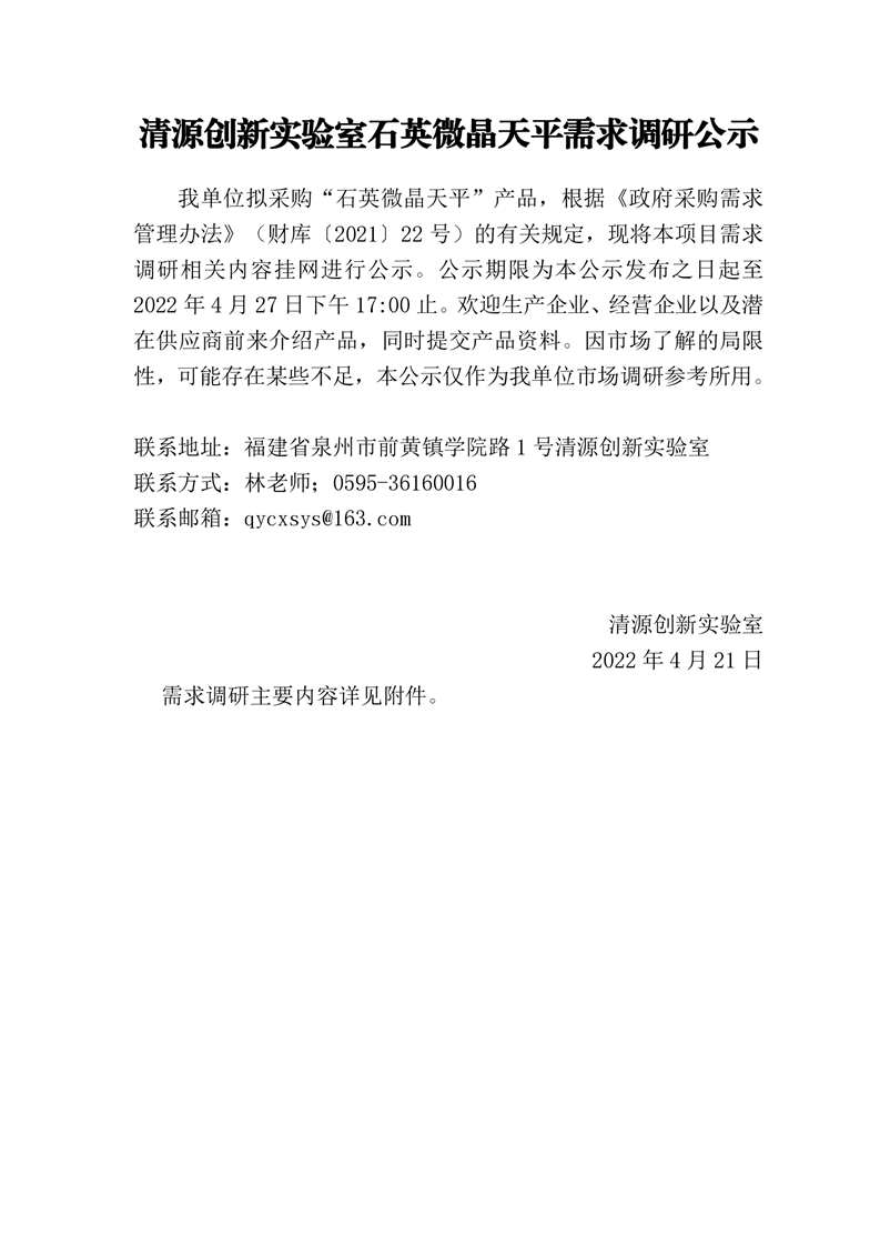 新得利(中国)石英微晶天平需求调研公示
