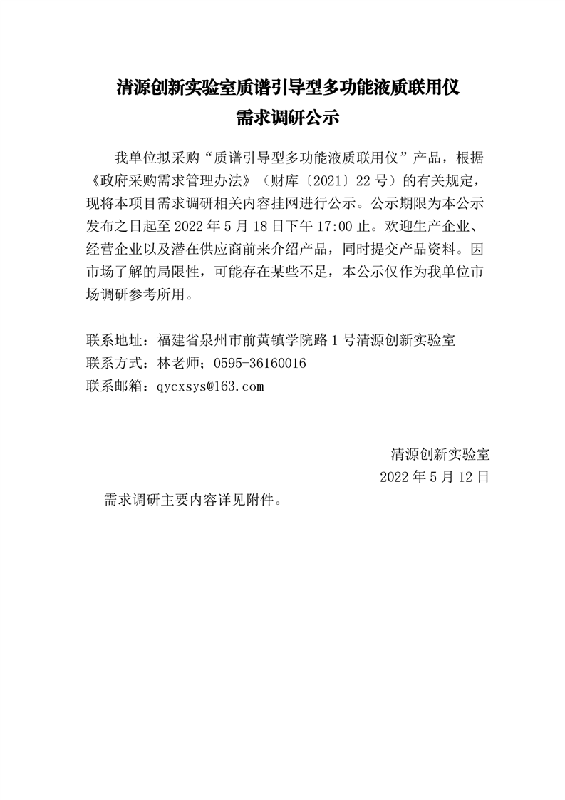 新得利(中国)质谱引导型多功能液质联用仪需求调研公示