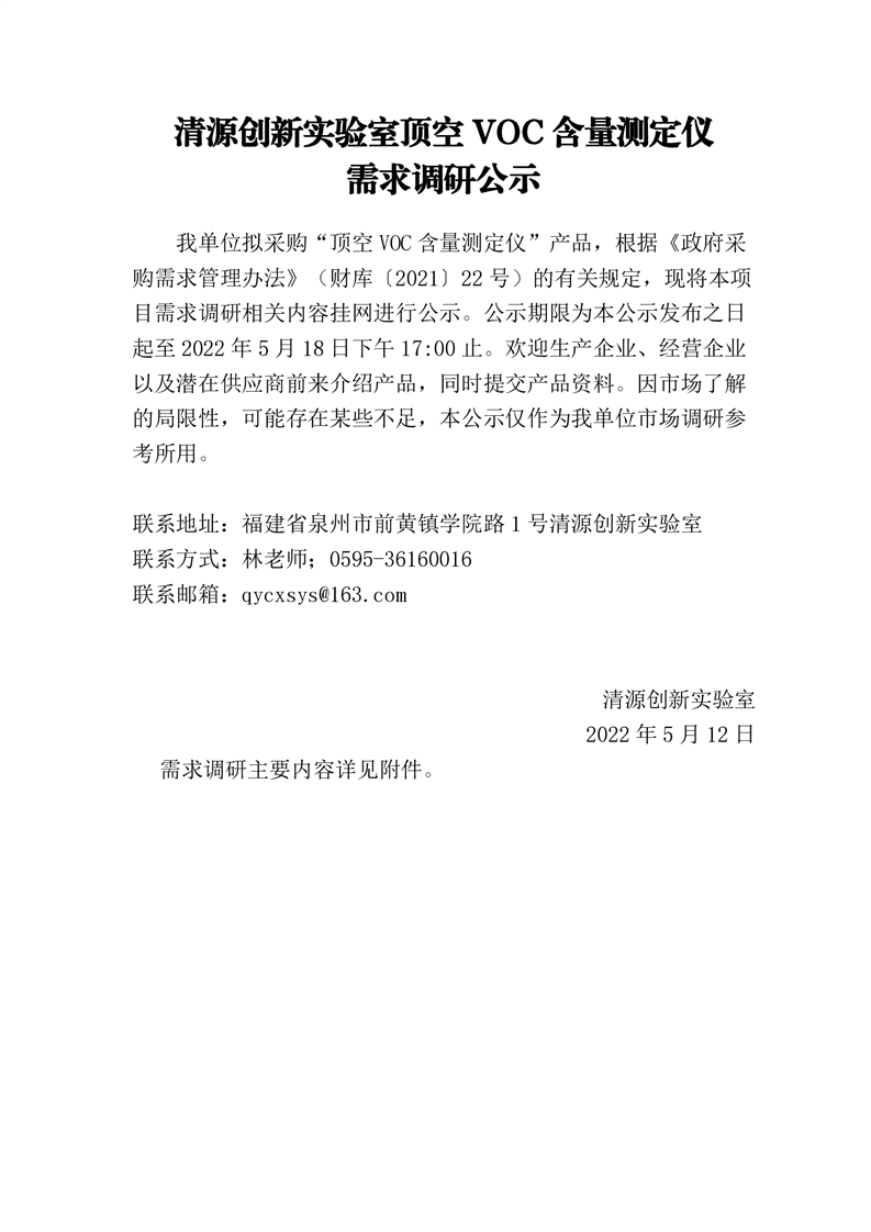 新得利(中国)顶空VOC含量测定仪需求调研公示