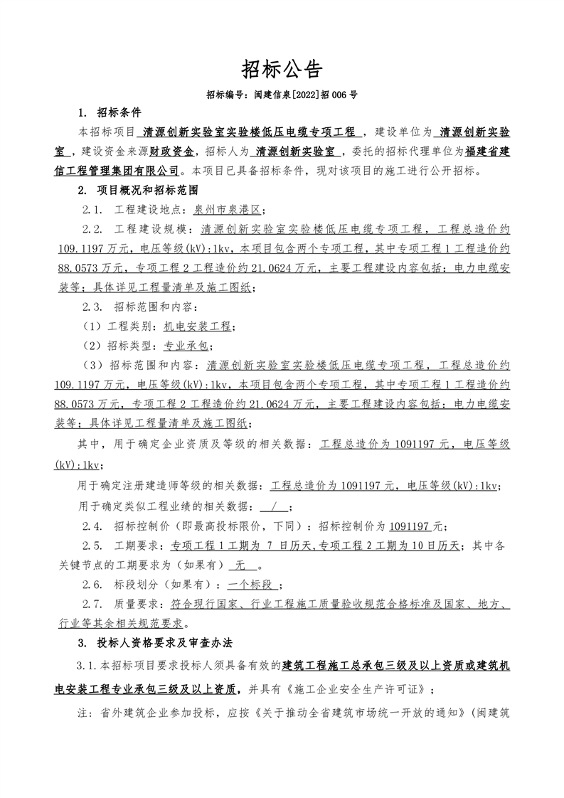新得利(中国)实验楼低压电缆专项工程招标公告