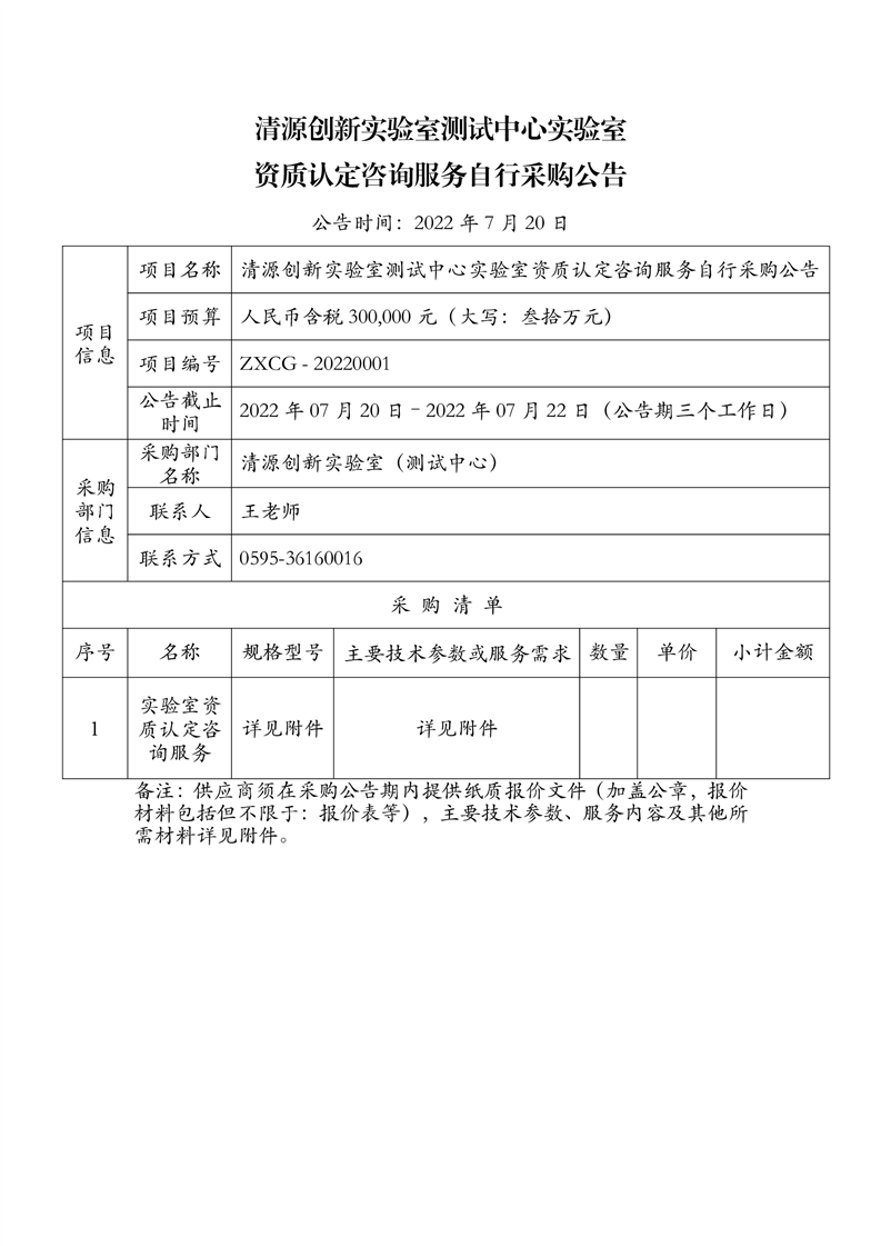 新得利(中国)测试中心实验室资质认定咨询服务自行采购公告