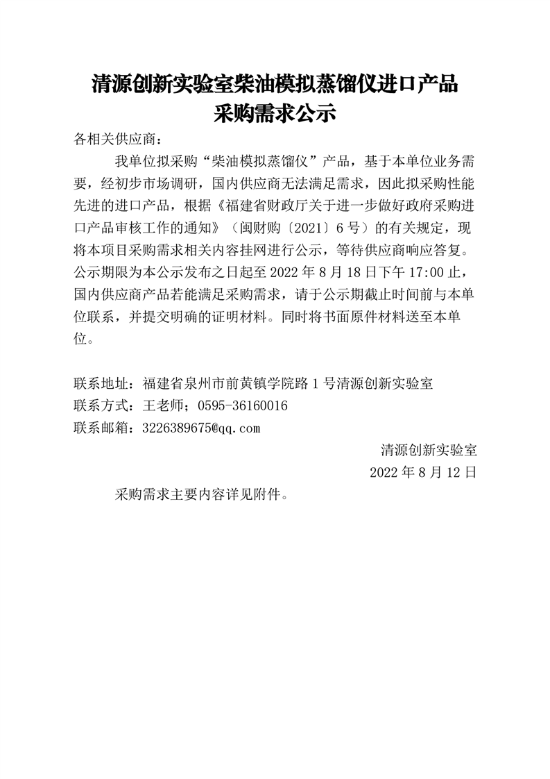 新得利(中国)柴油模拟蒸馏仪进口产品 采购需求公示