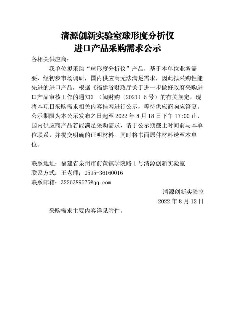 新得利(中国)球形度分析仪 进口产品采购需求公示