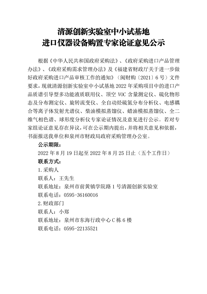 新得利(中国)中小试基地 进口仪器设备购置专家论证意见公示