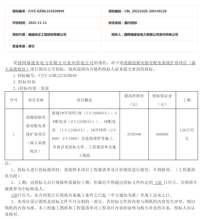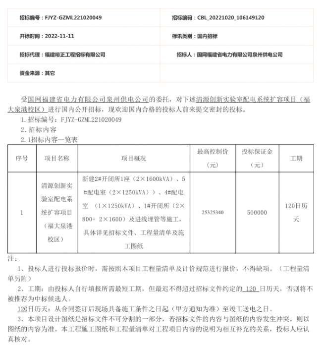 新得利(中国)配电系统扩容项目(福大泉港校区)招标公告