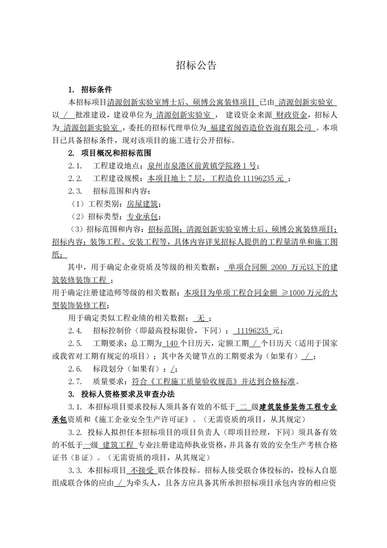 新得利(中国)博士后、硕博公寓装修项目(招标公告)