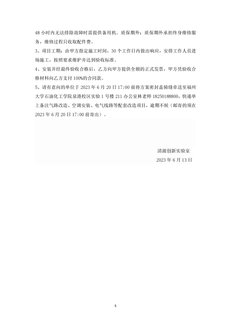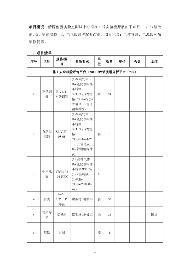 测试中心关于气路改造、空调安装、电气线路等配套改造的询价通知