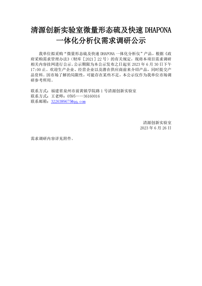 新得利(中国)微量形态硫及快速DHAPONA一体化分析仪需求调研公示