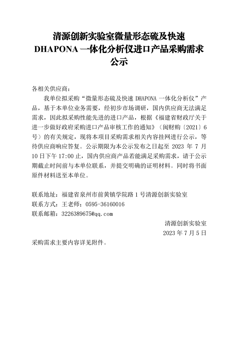 新得利(中国)微量形态硫及快速DHAPONA一体化分析仪进口产品采购需求公示