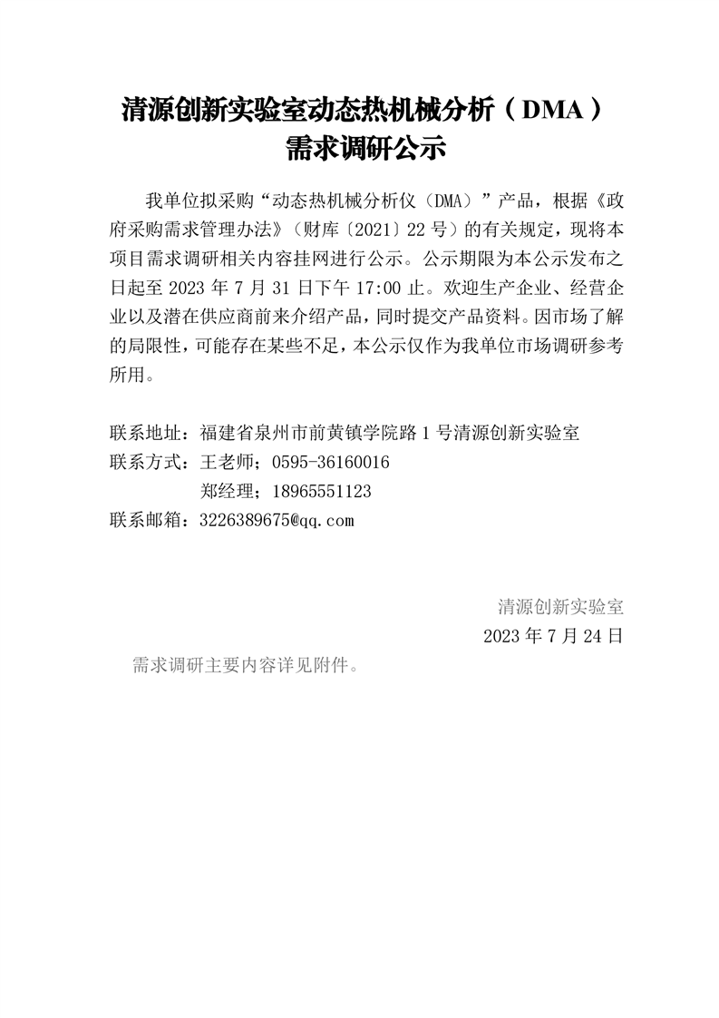 新得利(中国)动态热机械分析(DMA)需求调研公示