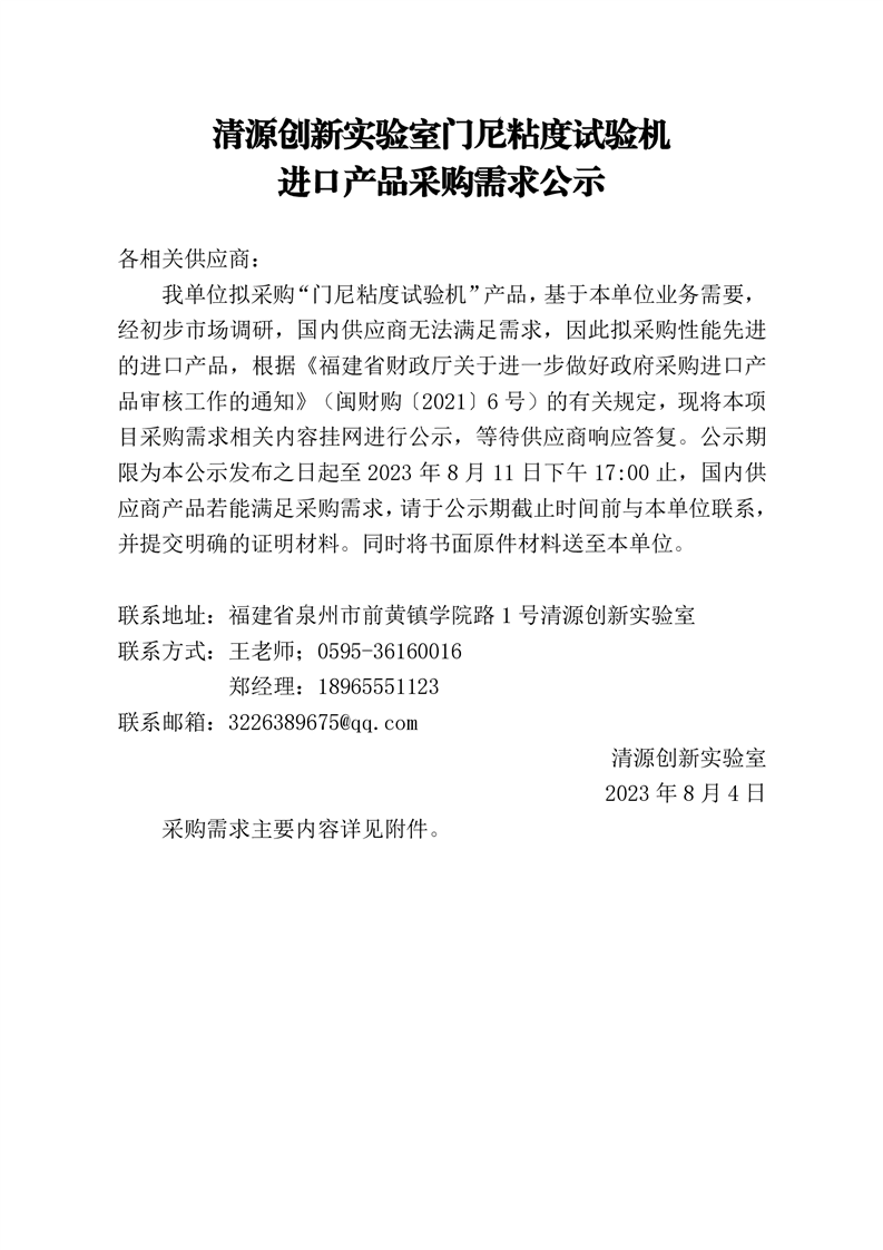 门尼粘度试验机进口产品采购需求公示