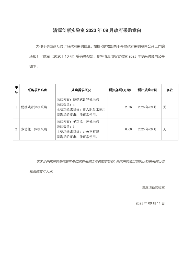 新得利(中国) 2023 年 09 月政府采购意向