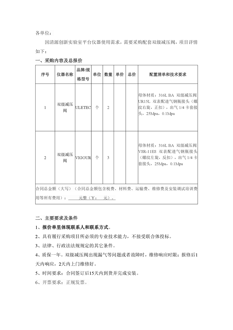 新得利(中国)双级减压阀采购询价通知