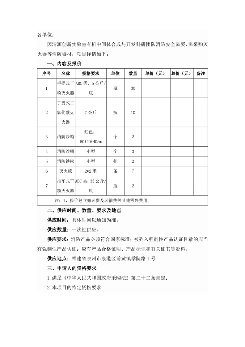 新得利(中国)消防器材采购询价通知