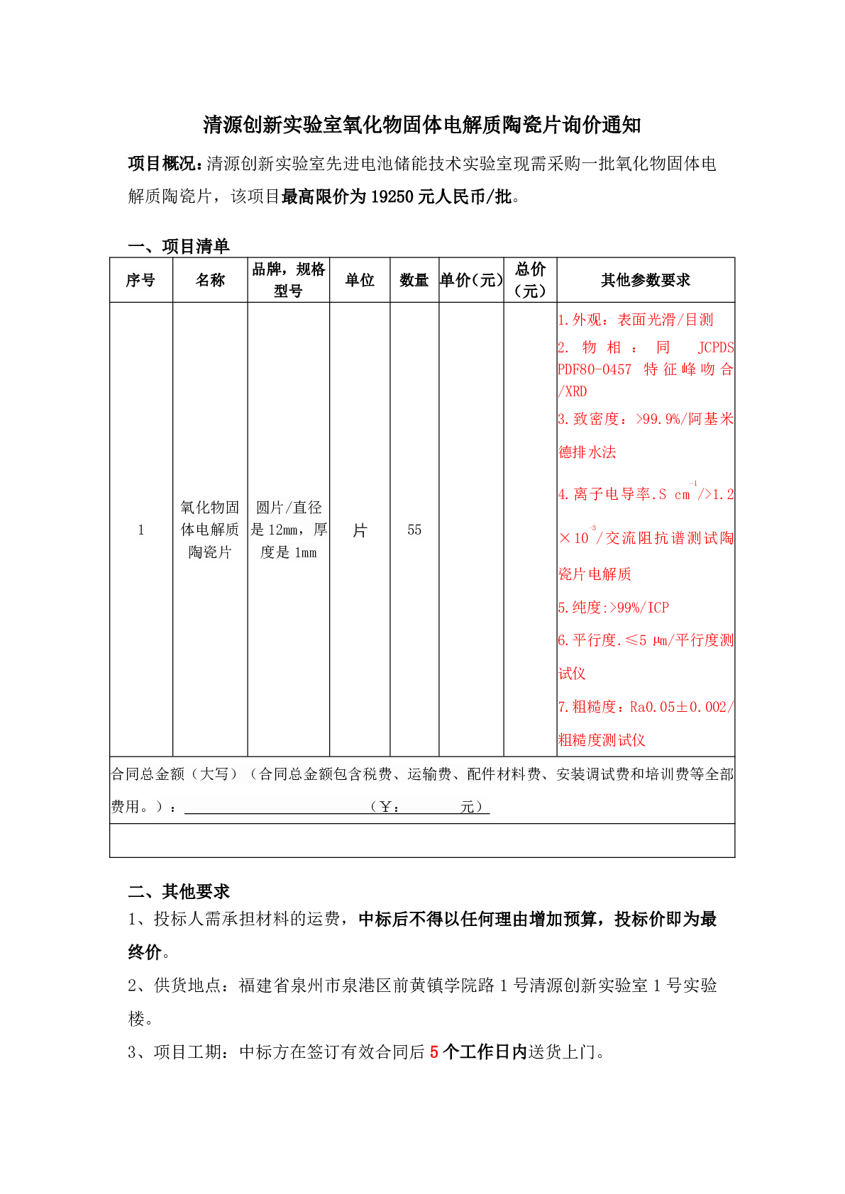 新得利(中国)氧化物固体电解质陶瓷片询价通知