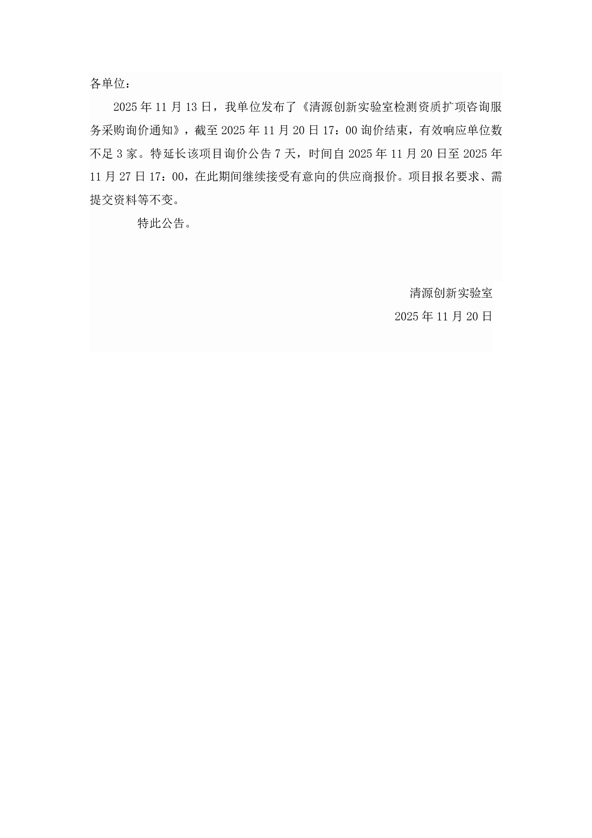新得利(中国)检测资质扩项咨询服务采购询价延期公告