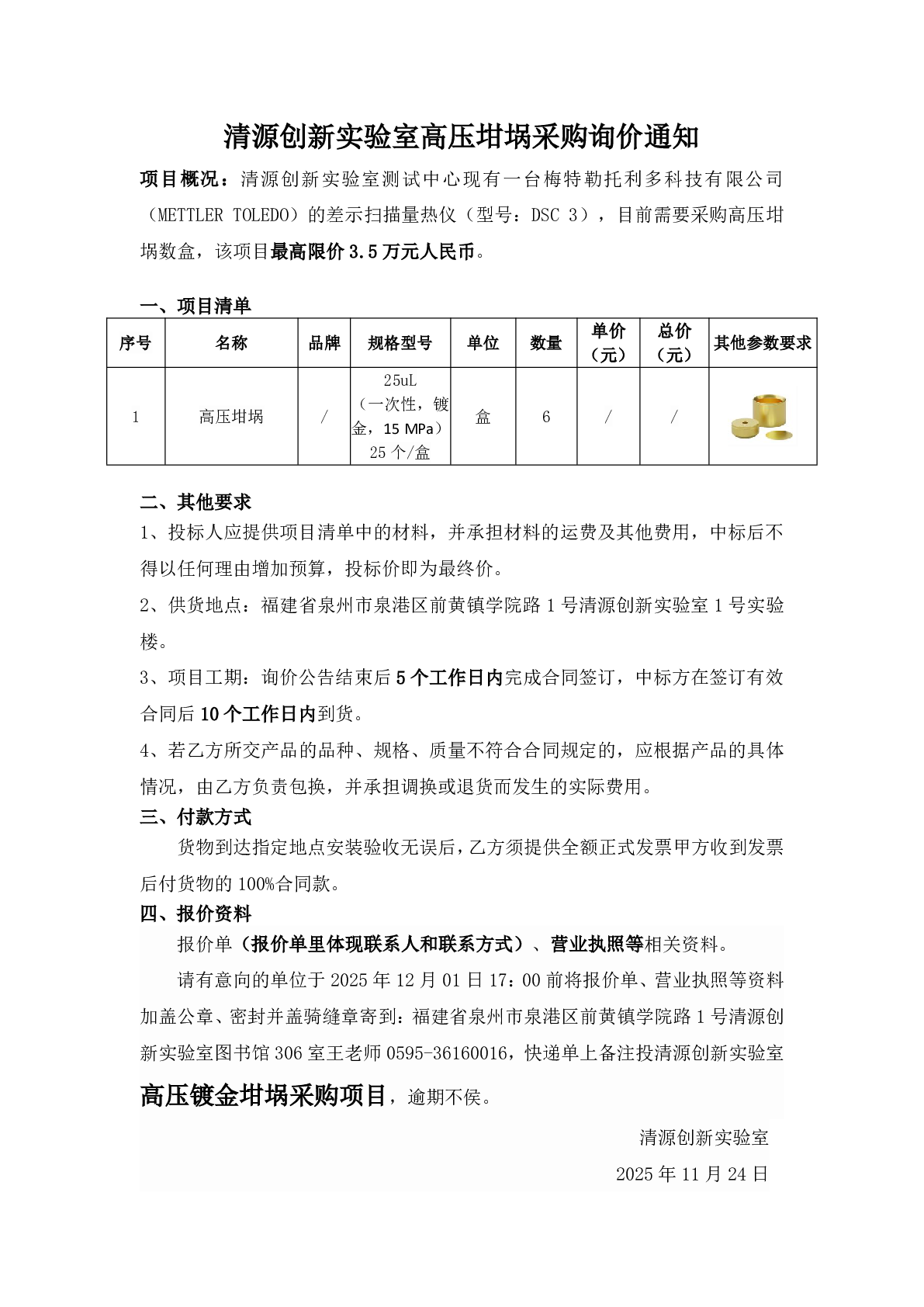 新得利(中国)高压坩埚采购询价通知
