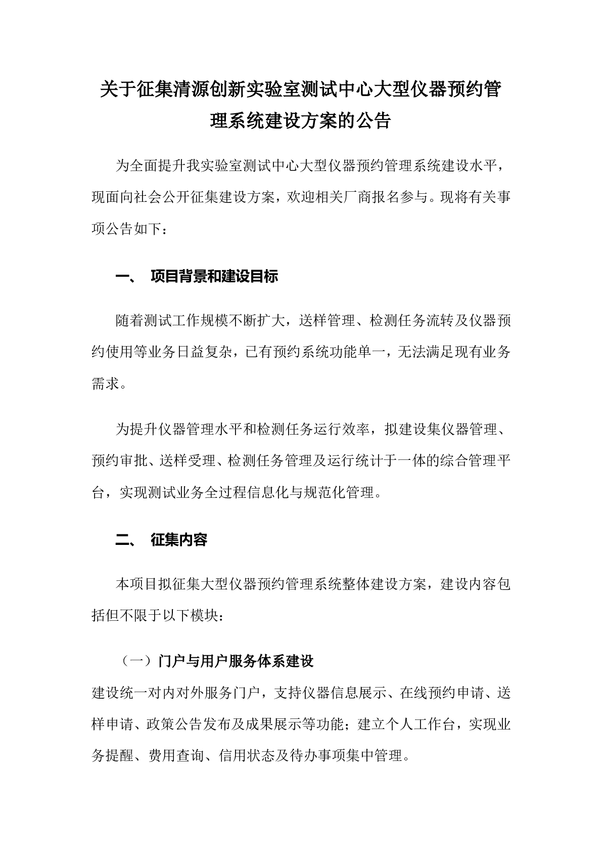 关于征集新得利(中国)测试中心大型仪器预约管理系统建设方案的公告