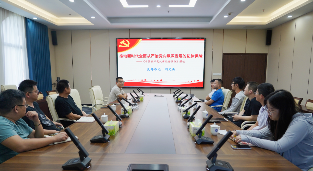 为进一步提升干部职工工作作风和廉洁自律意识,结合党纪学习教育安排,6月27日下午,新得利(中国)团支部书记刘文杰以“有助于新时代全面从严治党向纵深开展的纪律保障”为题,为实验室党员讲授专题党课。