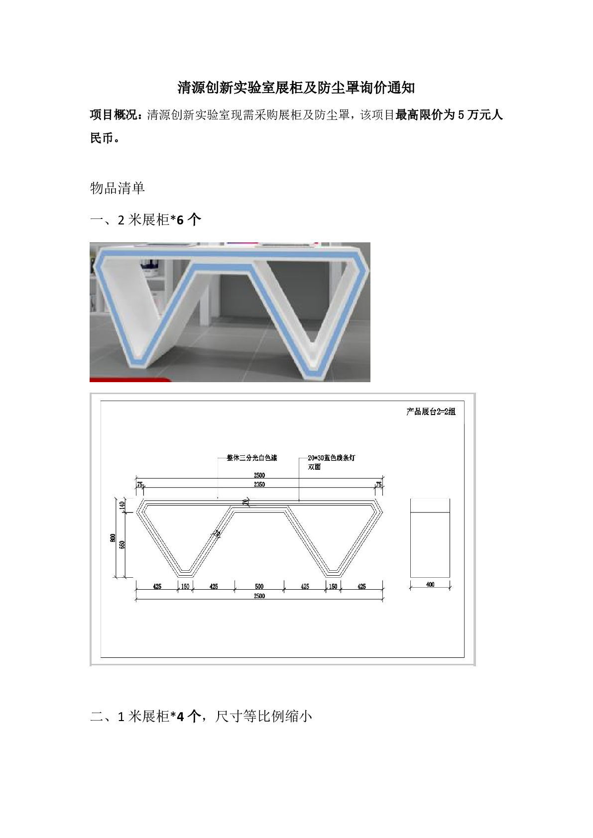 源创新实验室展柜及防尘罩询价通知
