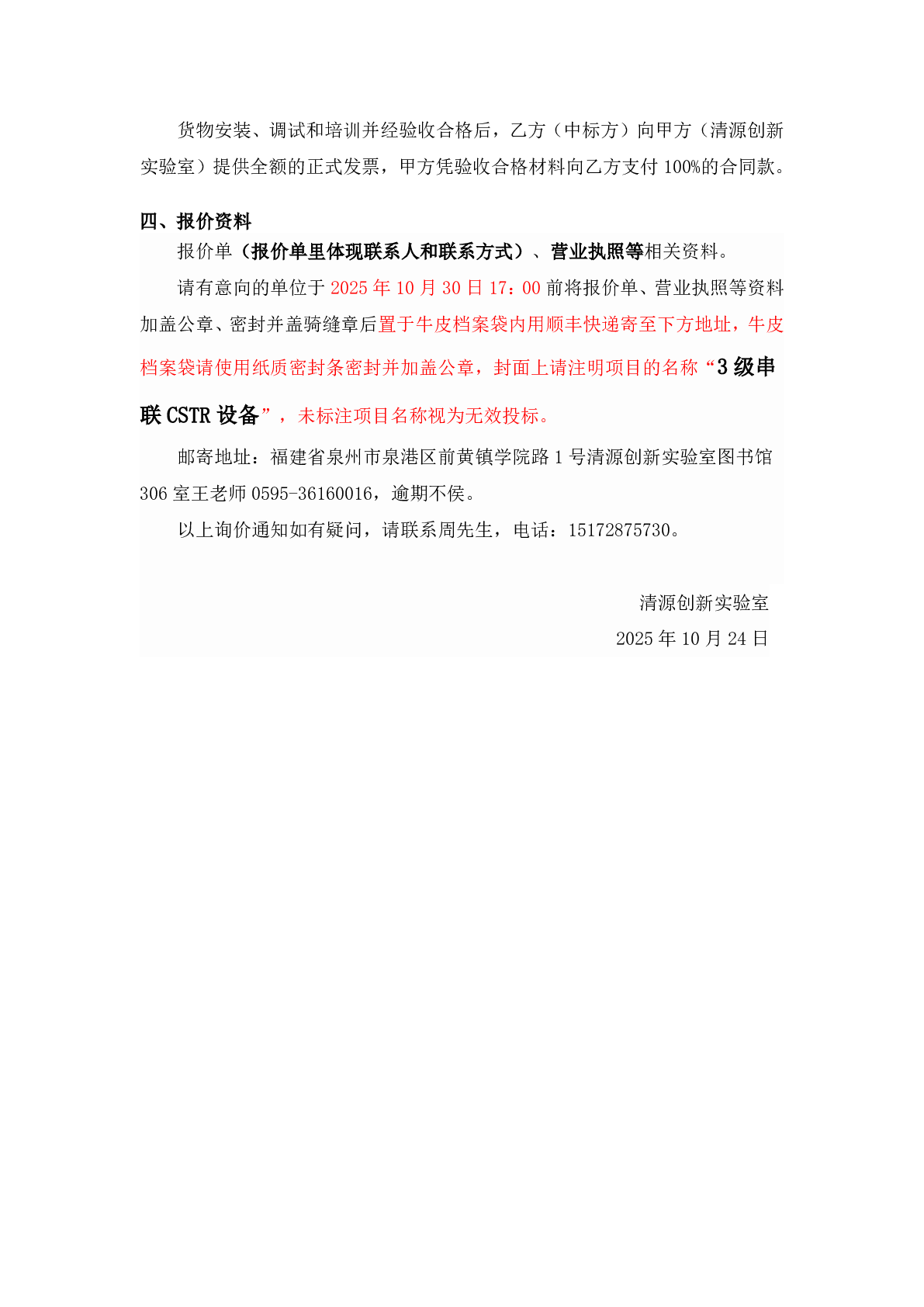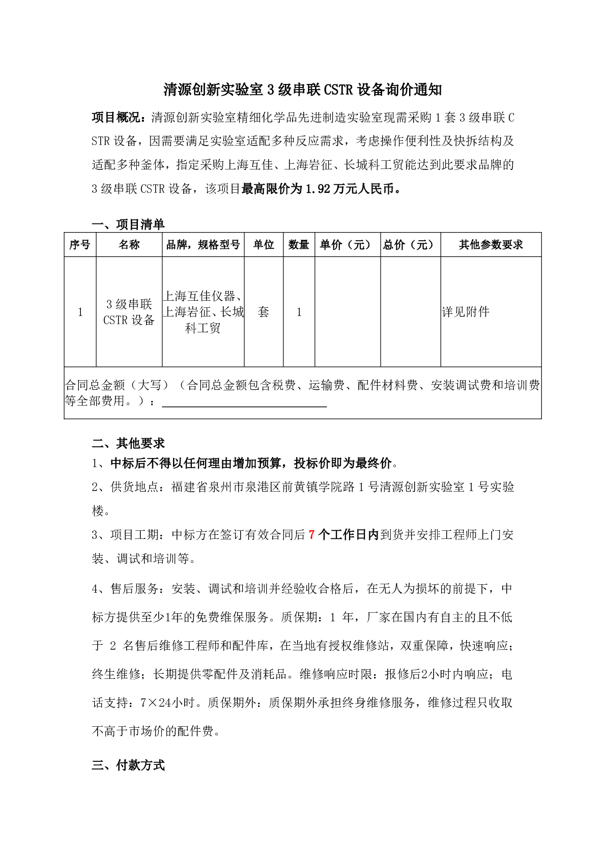 源创新实验室询价通知-3级串联CSTR设备询价通知