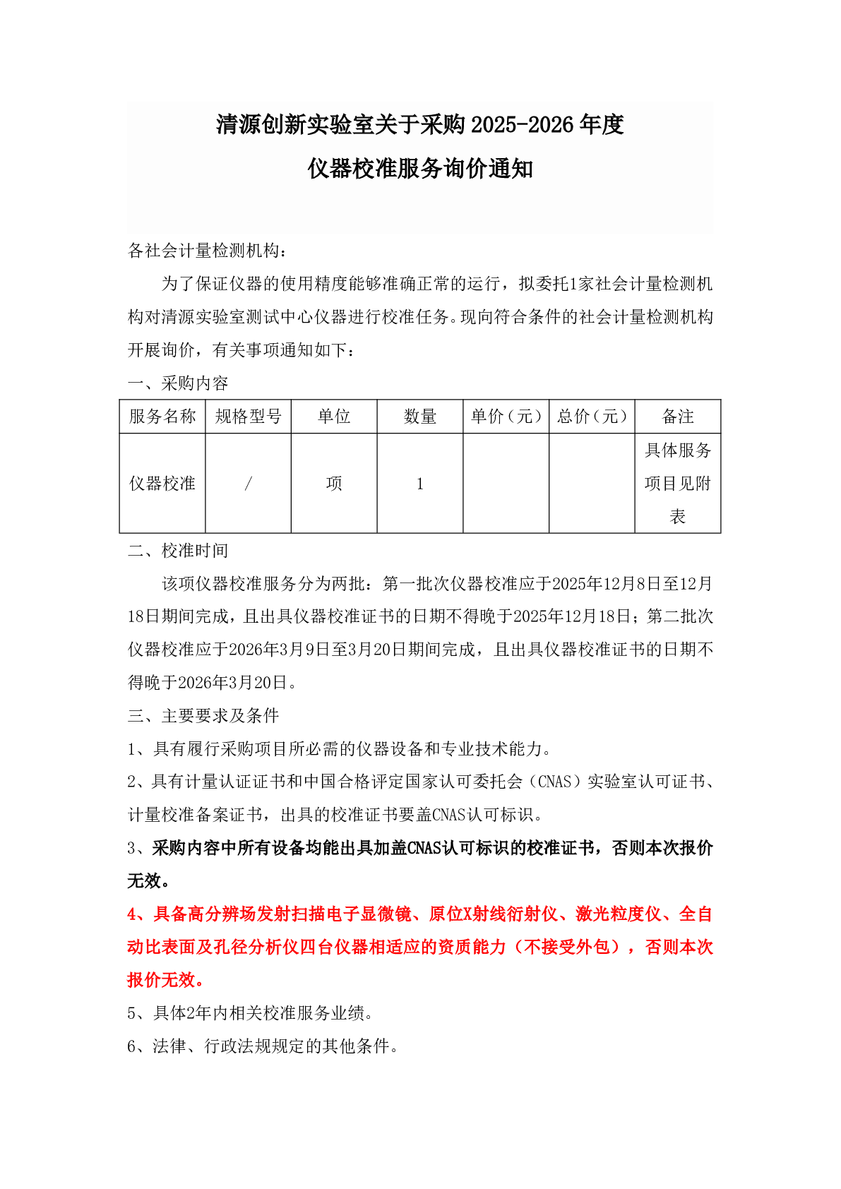 新得利(中国)关于采购2025-2026年度仪器校准服务询价通知