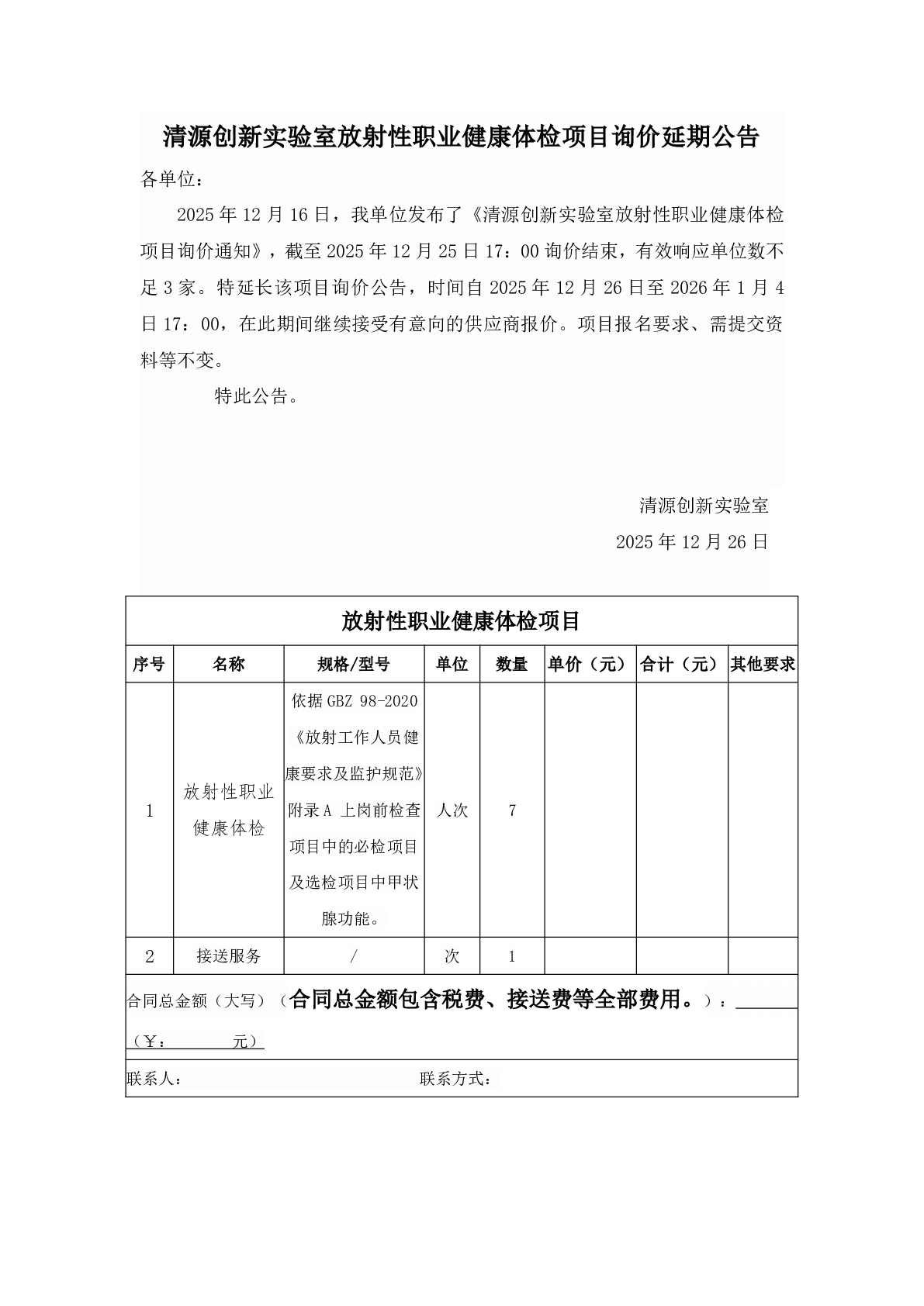 新得利(中国)放射性职业健康体检项目询价延期公告