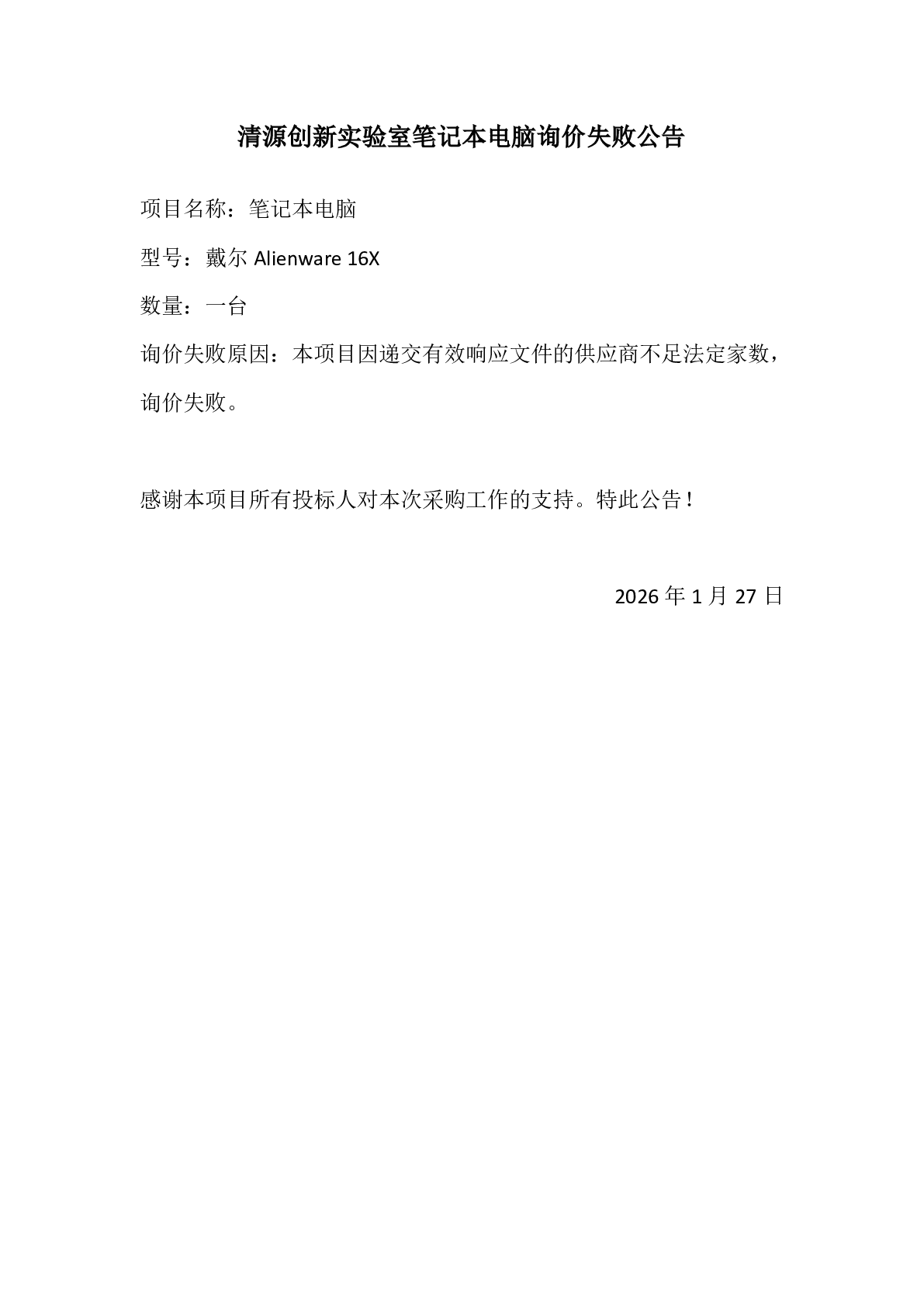 新得利(中国)笔记本电脑询价失败公告